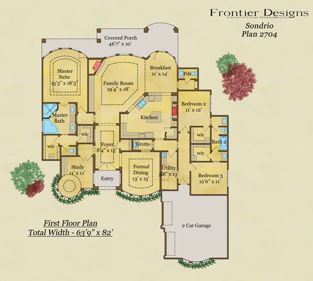 Frontier maintains an extensive online archive of over 200 popular floor plans. You are by no means restricted to this list. The purpose of this archive is to help generate ideas and to display some of the endless possibilites that are available to you when you design and build a custom home with Frontier. Please, contact one of Frontier's representatives to start the process of designing and constructing your dream home today.