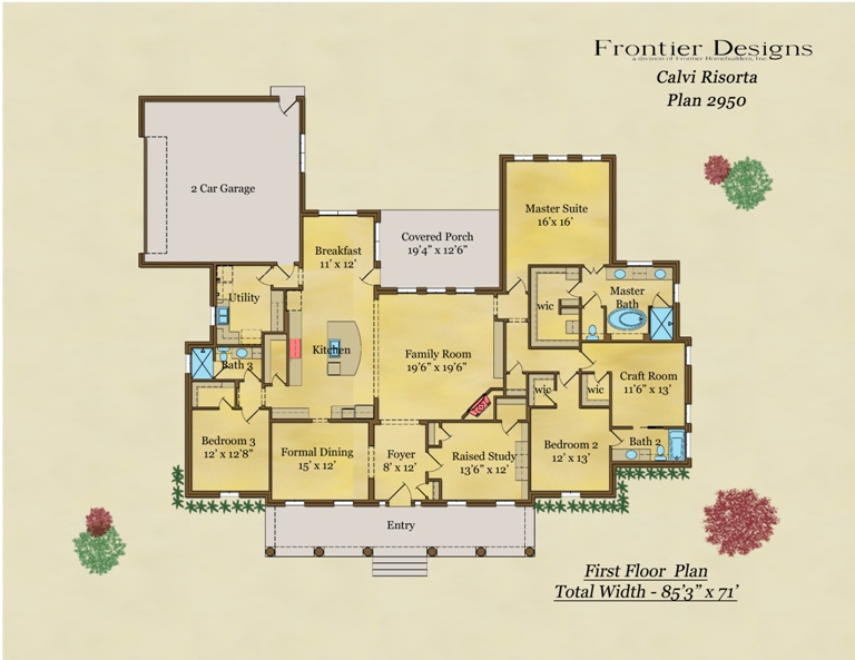 Frontier maintains an extensive online archive of over 200 popular floor plans. You are by no means restricted to this list. The purpose of this archive is to help generate ideas and to display some of the endless possibilites that are available to you when you design and build a custom home with Frontier. Please, contact one of Frontier's representatives to start the process of designing and constructing your dream home today.