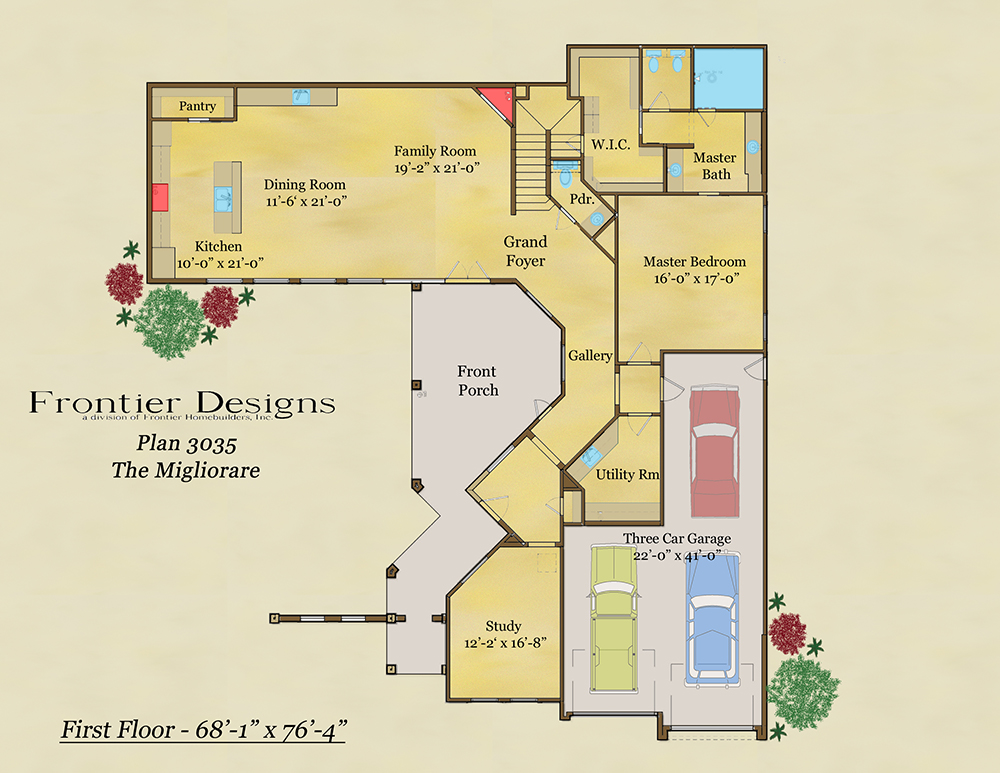 Frontier maintains an extensive online archive of over 200 popular floor plans. You are by no means restricted to this list. The purpose of this archive is to help generate ideas and to display some of the endless possibilites that are available to you when you design and build a custom home with Frontier. Please, contact one of Frontier's representatives to start the process of designing and constructing your dream home today.