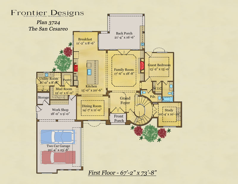 Frontier maintains an extensive online archive of over 200 popular floor plans. You are by no means restricted to this list. The purpose of this archive is to help generate ideas and to display some of the endless possibilites that are available to you when you design and build a custom home with Frontier. Please, contact one of Frontier's representatives to start the process of designing and constructing your dream home today.