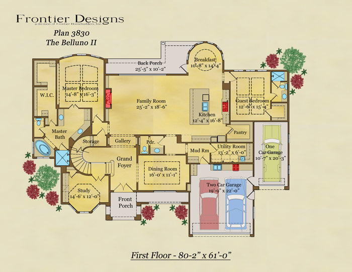 Frontier maintains an extensive online archive of over 200 popular floor plans. You are by no means restricted to this list. The purpose of this archive is to help generate ideas and to display some of the endless possibilites that are available to you when you design and build a custom home with Frontier. Please, contact one of Frontier's representatives to start the process of designing and constructing your dream home today.