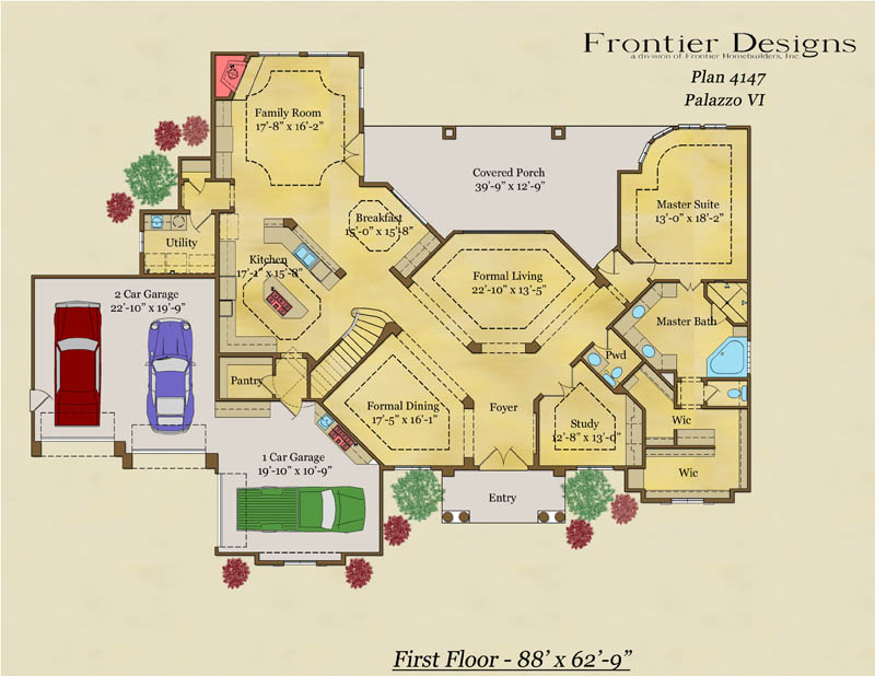 Frontier maintains an extensive online archive of over 200 popular floor plans. You are by no means restricted to this list. The purpose of this archive is to help generate ideas and to display some of the endless possibilites that are available to you when you design and build a custom home with Frontier. Please, contact one of Frontier's representatives to start the process of designing and constructing your dream home today.