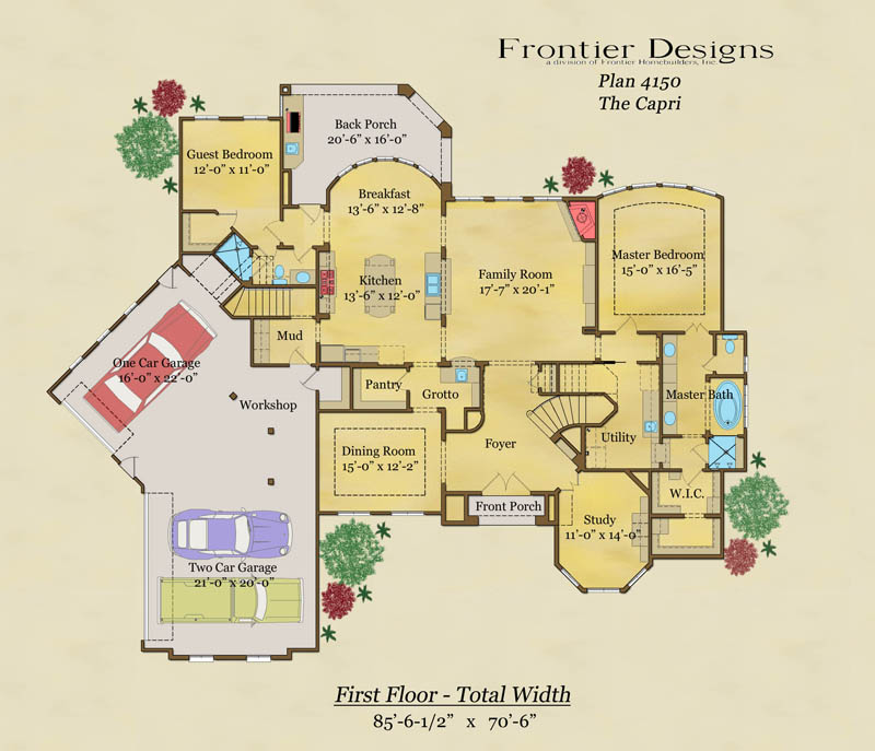 Frontier maintains an extensive online archive of over 200 popular floor plans. You are by no means restricted to this list. The purpose of this archive is to help generate ideas and to display some of the endless possibilites that are available to you when you design and build a custom home with Frontier. Please, contact one of Frontier's representatives to start the process of designing and constructing your dream home today.
