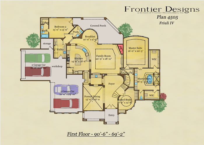 Frontier maintains an extensive online archive of over 200 popular floor plans. You are by no means restricted to this list. The purpose of this archive is to help generate ideas and to display some of the endless possibilites that are available to you when you design and build a custom home with Frontier. Please, contact one of Frontier's representatives to start the process of designing and constructing your dream home today.